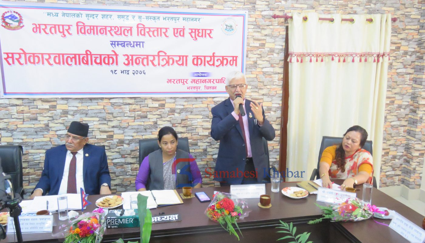 प्रदेश राजधानीको समेत नजिक भएको भन्दै भरतपुर विमानस्थलको विस्तार तथा सुधारको अति आवश्यक रहेको बताए । उनले मुख्यमन्त्री पौडेलले सरकारले चाहे र आवश्यकता महसुस गरे जुनसुकै जग्गा प्रकृया पुरा गरेर विमानस्थल विस्तारको लागि प्रयोग गर्न सकिने समेत प्रष्ट पारे ।