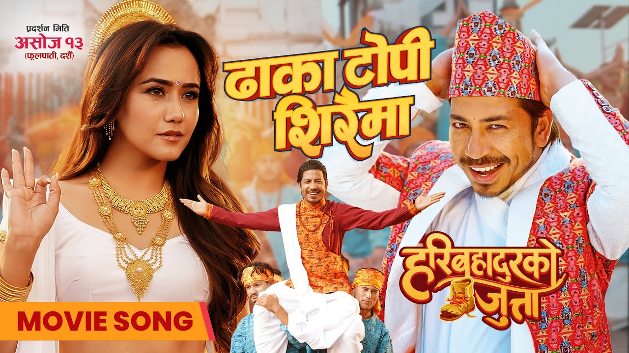 ‘ढाका टोपी शिरैमा’ बोलको गीतमा दीपक शर्माको संगीत, धनबहादुर कार्कीको शब्द, आशिष अविरल र मेलिना राईको स्वर छ । गीतमा हरिवंशसहित प्रकाश सपुत र स्वस्तिमा खड्का फिचर्ड छन् ।